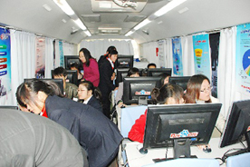 會(huì)后,信息化大篷車上,客服經(jīng)理正在與客戶“一對(duì)一”現(xiàn)場(chǎng)演示