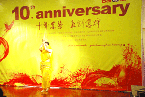 百度區(qū)域市場經(jīng)理蘇晨晨、區(qū)域渠道經(jīng)理曹宇、區(qū)域客服經(jīng)理晏博與我公司高層領(lǐng)導一起同大家舉杯共慶百度十歲