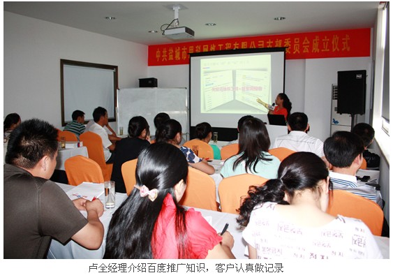 7月鹽城時而酷暑難當(dāng);時而天高氣爽;時而烈日當(dāng)空;時而暴雨傾盆。16日下午,整個鹽城市區(qū)深陷暴雨包圍,然而密集的雨滴并不能澆滅客戶對百度推廣知識的渴求熱情。經(jīng)過思科公司客服部、市場部兩大部門多位員工的細(xì)密而周到安排,14:30左右,主題為“新媒體 精準(zhǔn)互動新營銷”百度推廣客戶交流會在公司會議室順利召開。