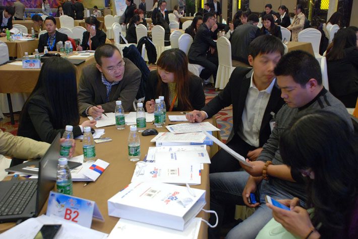 現(xiàn)場(chǎng)企業(yè)家向工作人員咨詢百度移動(dòng)搜索推廣